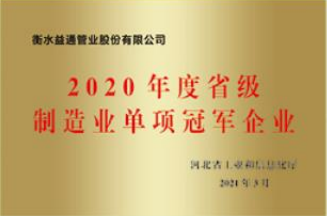 2020年度省級制造業(yè)單項冠軍企業(yè)