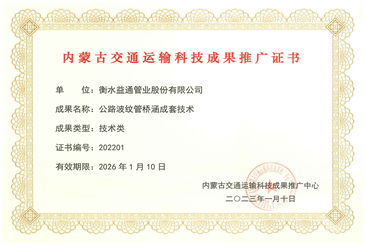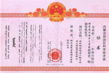 內(nèi)蒙古交通運輸科技成果推廣證書