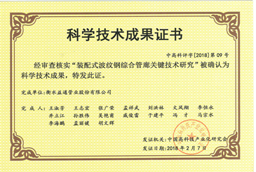 河北省科學技術成果證書